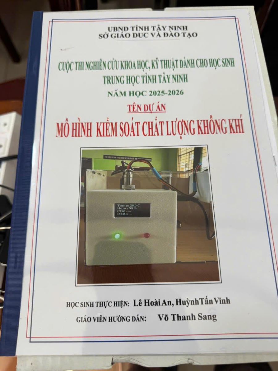 Em Lê Hoài An, học sinh lớp 9/3, Trường THCS Phước Vĩnh Đông, đã nghiên cứu và thực hiện đề tài “MÔ HÌNH KIỂM SOÁT CHẤT LƯỢNG KHÔNG KHÍ” tham gia cuộc thi nghiên cứu khoa học kỹ thuật tổ chức vào ngày 19/12/2025 tại Sở Giáo dục và Đào tạo tỉnh Tây Ninh. Đề tài xuất phát từ thực tế do nhu cầu công nghiệp hóa nhiều cơ quan, tổ chức sinh hoạt và làm việc trong phòng kín máy lạnh gây nồng độ không khí độc và các chất dễ bay hơi tăng cao. Sản phẩm được thiết kế với nguyên lý hoạt động đơn giản, có khả năng tự động điều khiển hoạt động giúp bảo vệ sức khỏe, tiết kiệm điện và đảm bảo an toàn cho người sử dụng. Qua quá trình nghiên cứu, thiết kế, lắp ráp và thử nghiệm, mô hình hoạt động ổn định, sử dụng vật liệu dễ tìm, chi phí thấp và có tính ứng dụng thực tiễn cao. Đề tài không chỉ góp phần nâng cao hiệu quả sử dụng nước sinh hoạt mà còn thể hiện tinh thần sáng tạo, chủ động và niềm đam mê nghiên cứu khoa học của học sinh Trường THCS Phước Vĩnh Đông.
