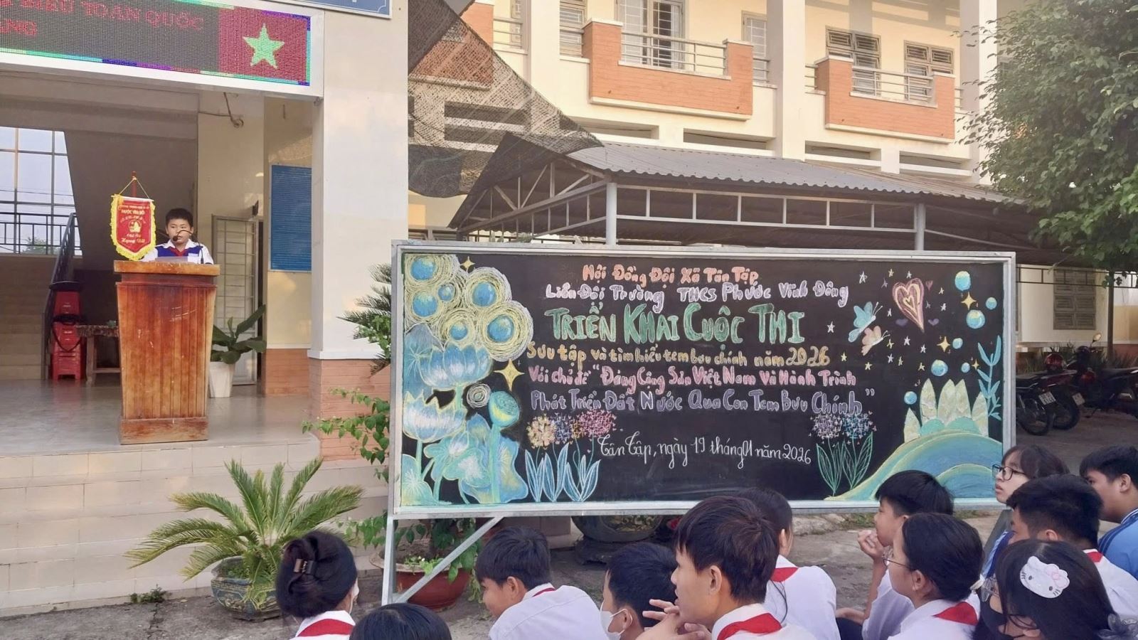 Thực hiện Chương trình Công tác Đội và Phong trào thanh thiếu nhi xã Tân Tập năm học 2025-2026. Nhằm đa dạng hóa các hình thức giáo dục truyền thống, tạo môi trường học tập sinh động cho đội viên, Ngày 19/01/2026 Liên đội trường THCS Phước Vĩnh Đông phối hợp với nhà trường triển khai Cuộc thi “Sưu tập và tìm hiểu tem Bưu chính năm 2026” với chủ đề “Đảng Cộng sản Việt Nam và hành trình phát triển đất nước qua con tem bưu chính”, hướng tới chào mừng Đại hội Đảng toàn quốc lần thứ XIV.