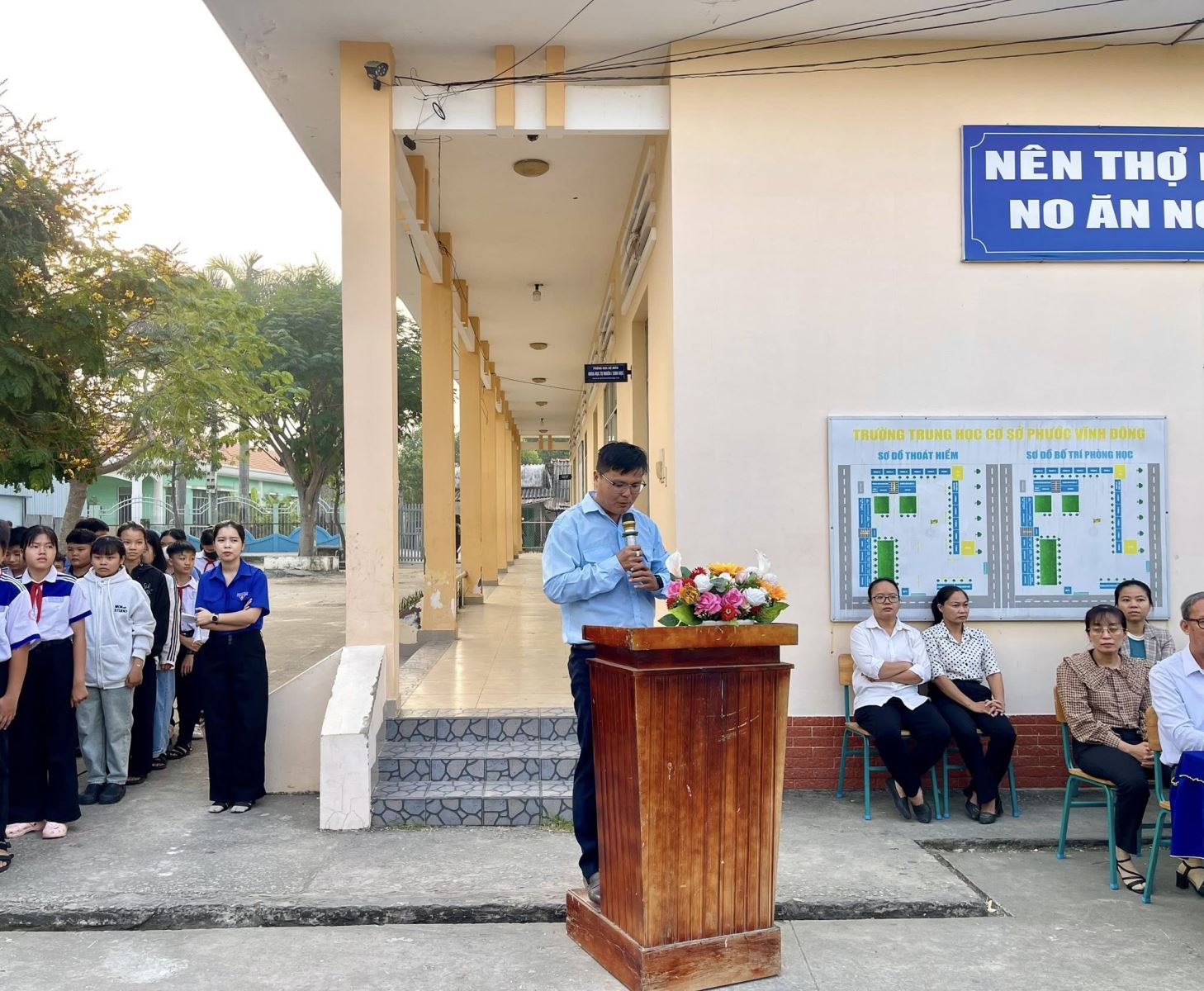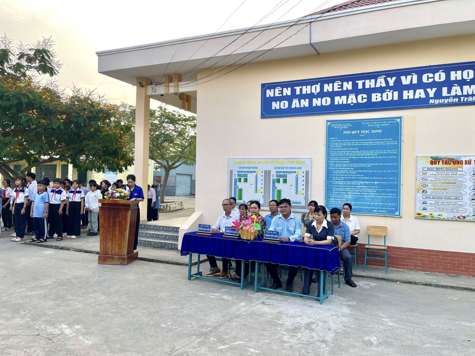 Đến dự buổi lễ ra mắt công trình có: Thầy Đặng Ngọc Hiếu-Hiệu trưởng nhà trường, Cô Trần Thị Mười-Phó Hiệu trưởng nhà trường, cùng quý thầy cô giáo và hơn 30 đội viên đại diện cho thiếu nhi toàn trường tham dự.