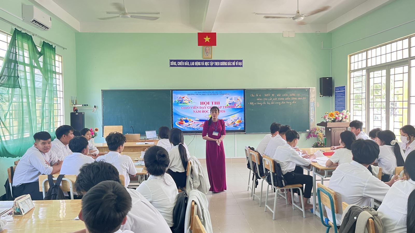 Từ ngày 09/3/2026 đến 19/3/2026, trường THCS Phước Vĩnh Đông tổ chức Hội thi giáo viên dạy giỏi cấp trường năm học 2025-2026. Qua Hội thi nhằm phát hiện, công nhận, tôn vinh giáo viên đạt danh hiệu giáo viên dạy giỏi và nhân rộng những điển hình tiên tiến, góp phần thu hút sự quan tâm của các lực lượng xã hội tham gia giáo dục trẻ em, học sinh, tạo động lực phát triển sự nghiệp giáo dục của mỗi địa phương và của toàn ngành; Tạo động lực cho giáo viên phấn đấu, hoàn thiện bản thân đáp ứng yêu cầu đổi mới, nâng cao chất lượng giáo dục, phát triển nghề nghiệp; Góp phần nâng cao hiệu quả sinh hoạt chuyên môn và đẩy mạnh các phong trào thi đua dạy và học trong trường học; khuyến khích, động viên tạo cơ hội cho giáo viên rèn luyện, tự học, sáng tạo, học hỏi, trao đổi, truyền đạt, phổ biến kinh nghiệm trong công tác giảng dạy đối với giáo viên THCS.