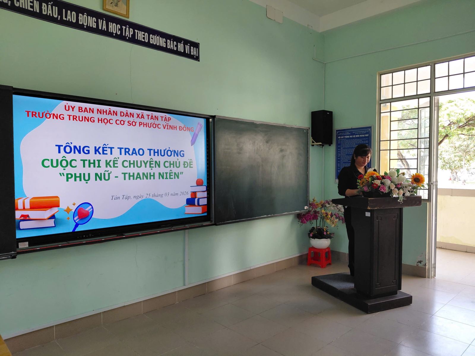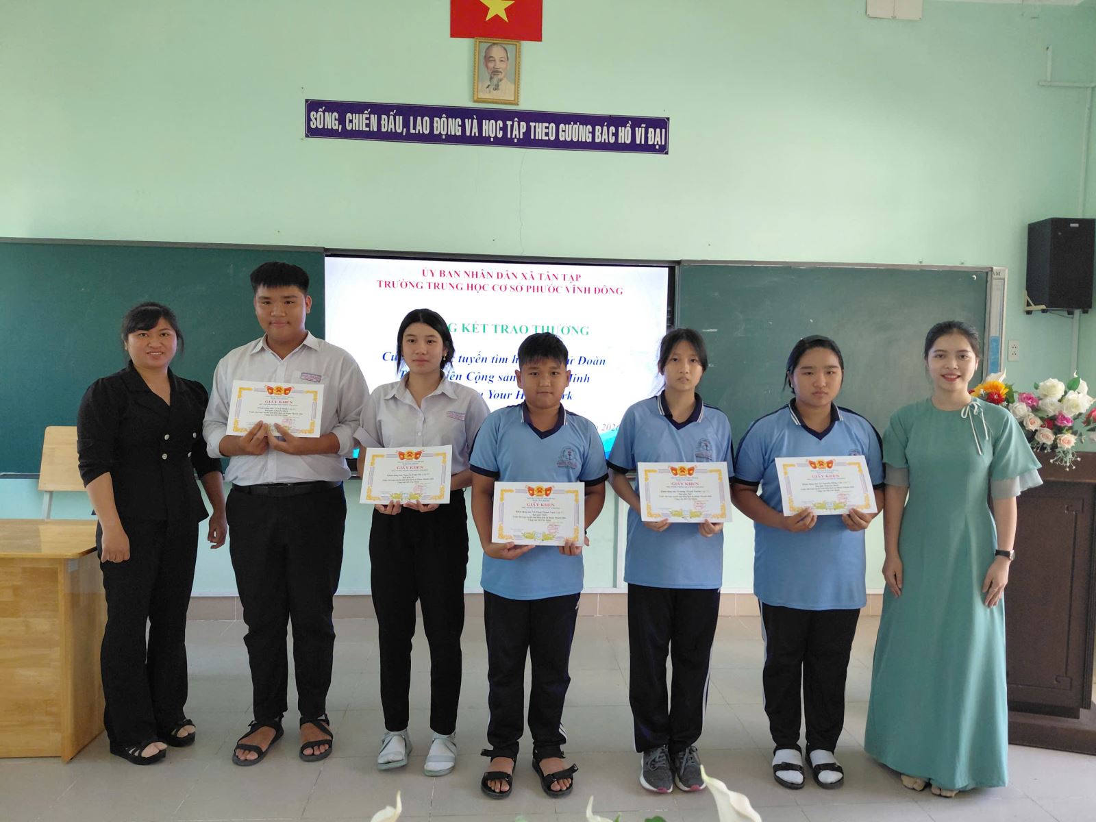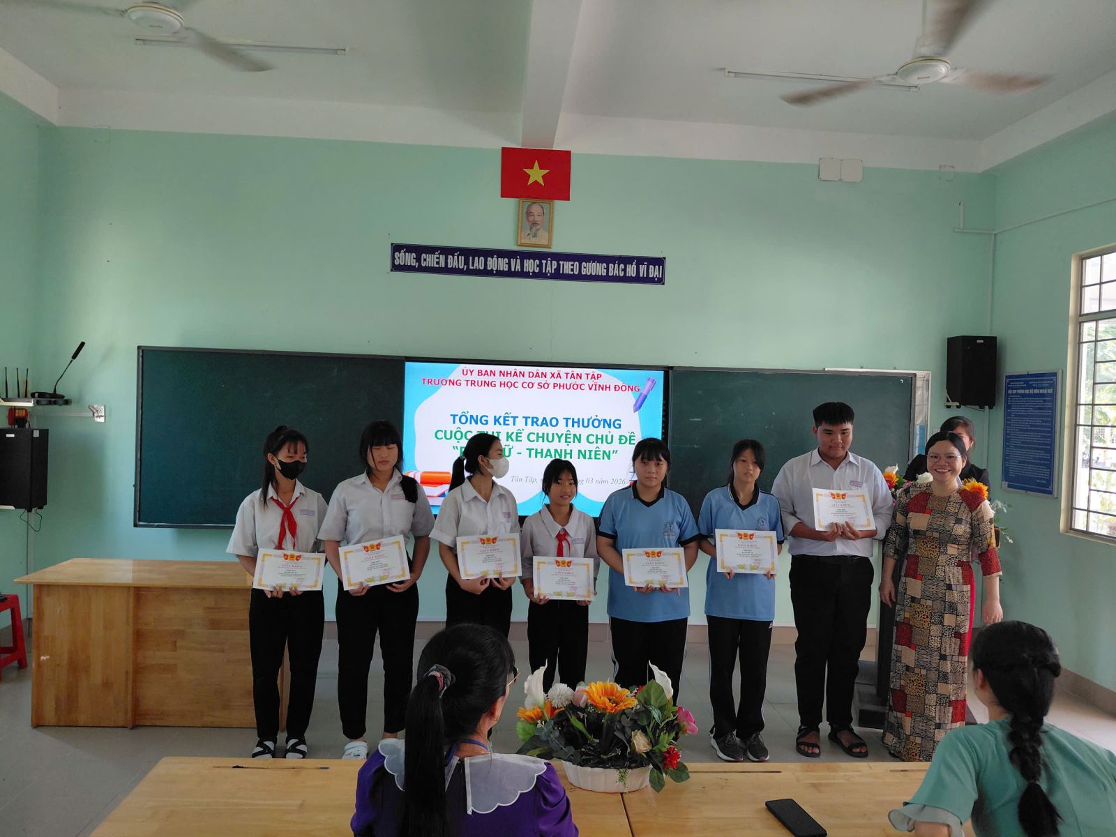 Tiếp theo là Hội thi tìm hiểu về cuộc đời, thân thế, sự nghiệp; tấm gương tư tưởng, đạo đức, phong cách Hồ Chí Minh, hướng tới kỷ niệm 136 năm Ngày sinh Chủ tịch Hồ Chí Minh (19/5/1890-19/5/2026). Hội thi đã tạo điều kiện để học sinh ôn lại những dấu mốc quan trọng trong cuộc đời hoạt động cách mạng của Bác, từ đó học tập và làm theo những phẩm chất cao đẹp của Người như giản dị, khiêm tốn, hết lòng vì nhân dân. Đây là hoạt động mang ý nghĩa giáo dục sâu sắc, góp phần hình thành nhân cách, lý tưởng sống đúng đắn cho thế hệ trẻ. Giải nhất thuộc về em Trần Nguyễn Anh Quân lớp 9/2.
